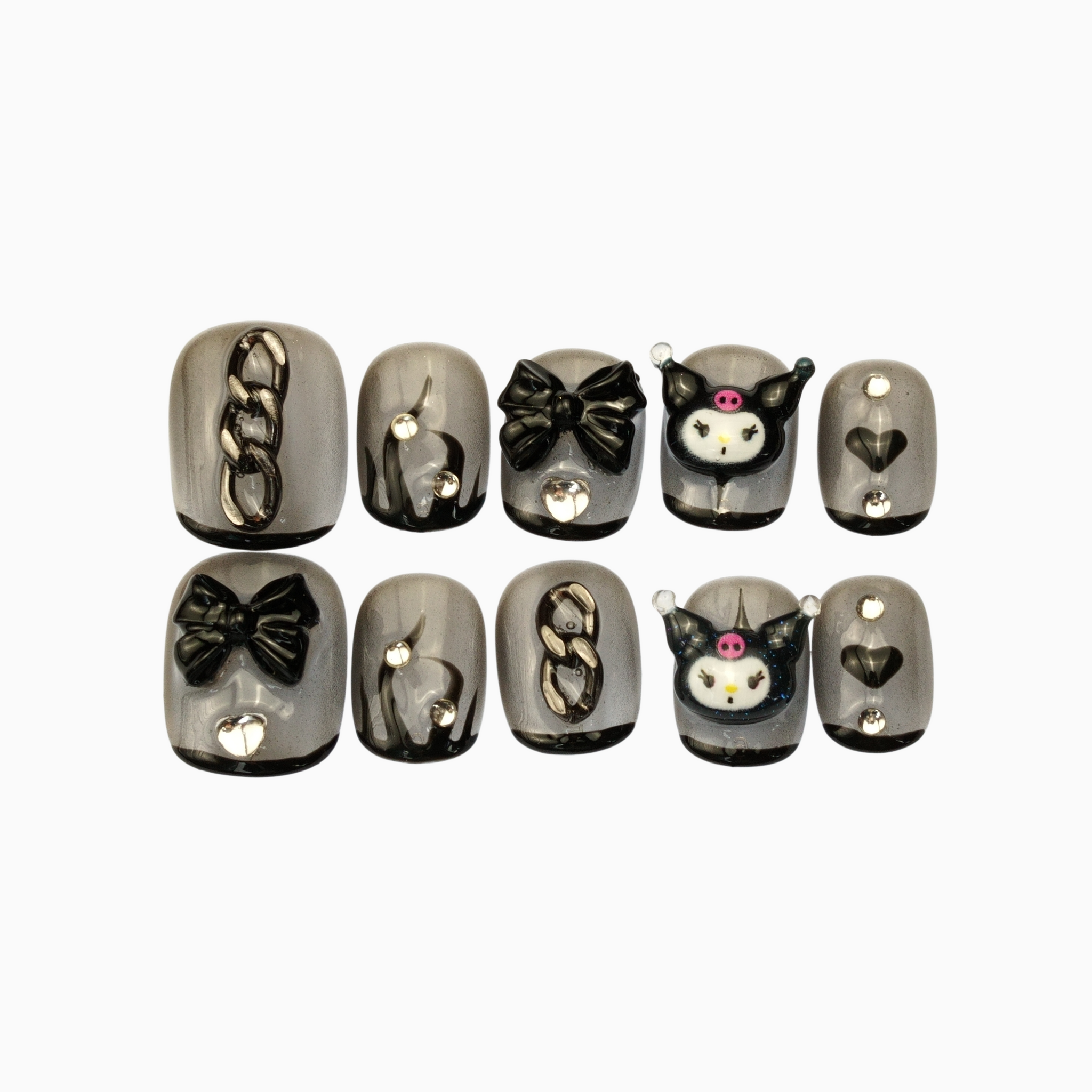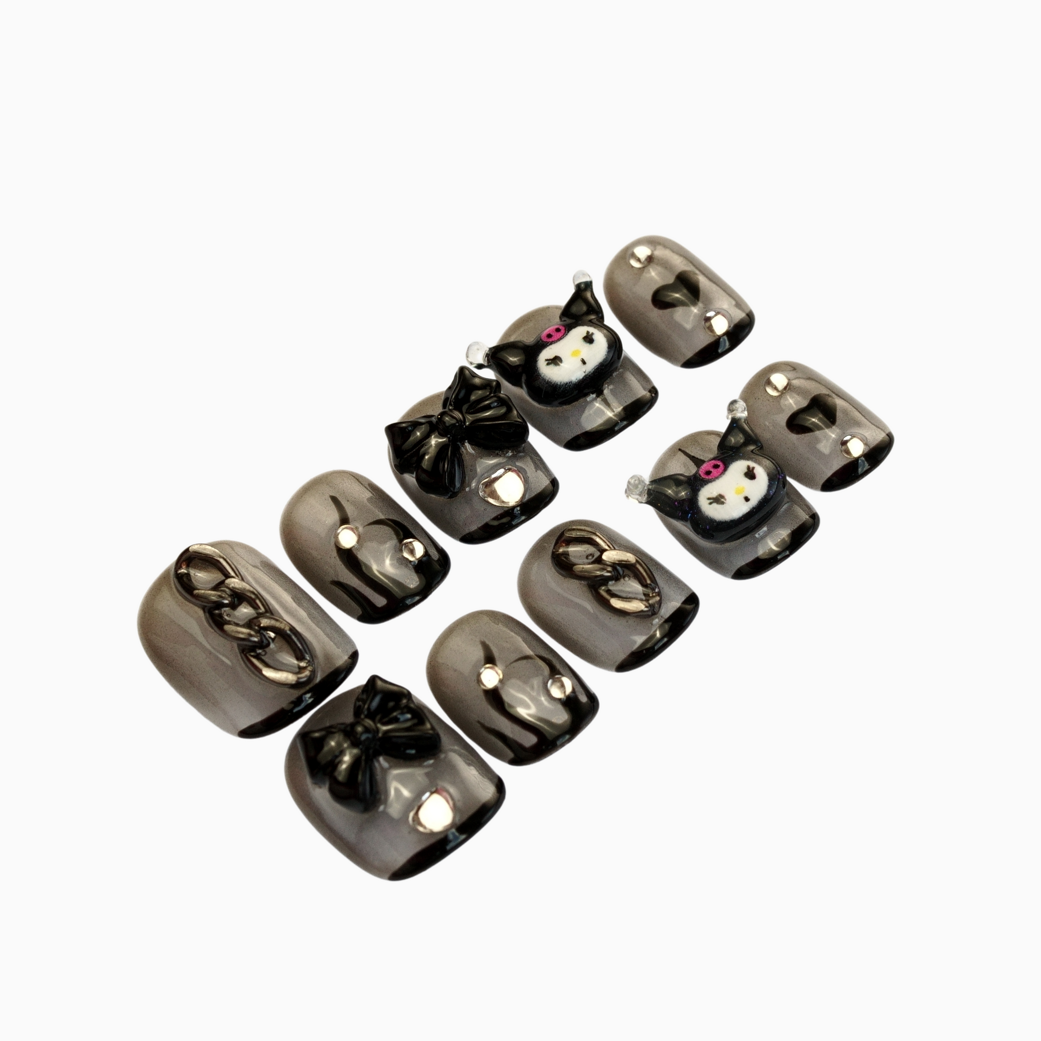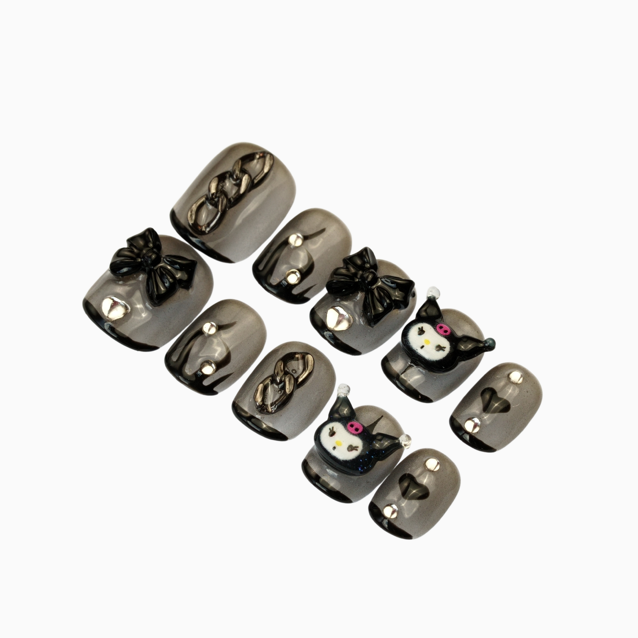 Blending moody metallics with glossy bows, rhinestone hearts, and our fave mischievous girl, Kuromi. Whether you’re channeling alt-girl vibes or leveling up your Sanrio obsession, this set brings attitude with a wink.