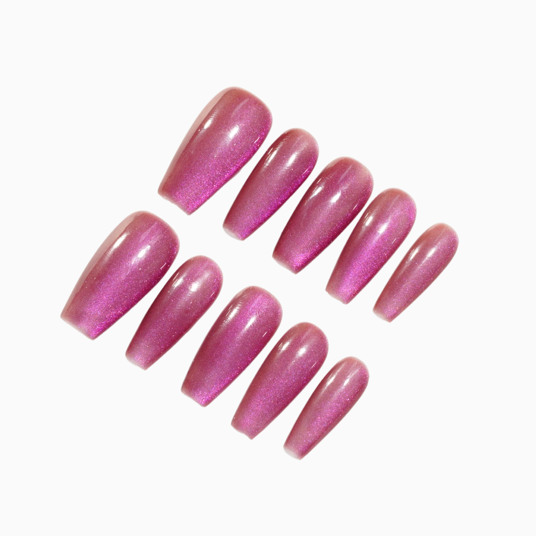 Violet-pink cat-eye sheen that glows under every light — simple yet magnetic.