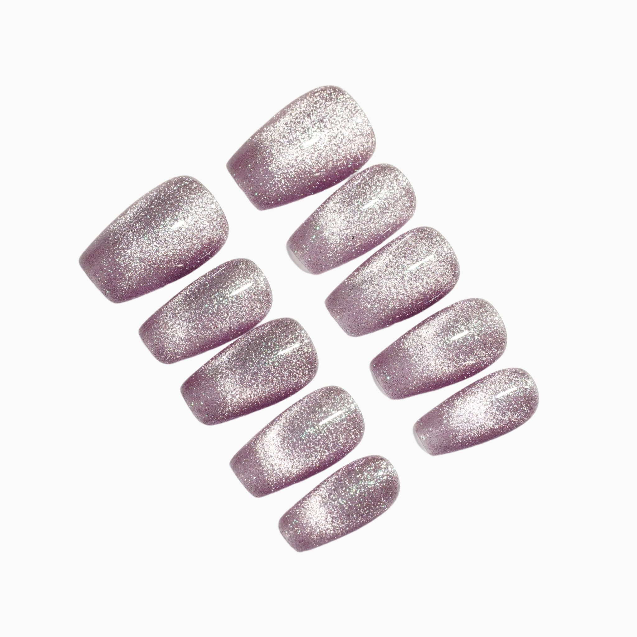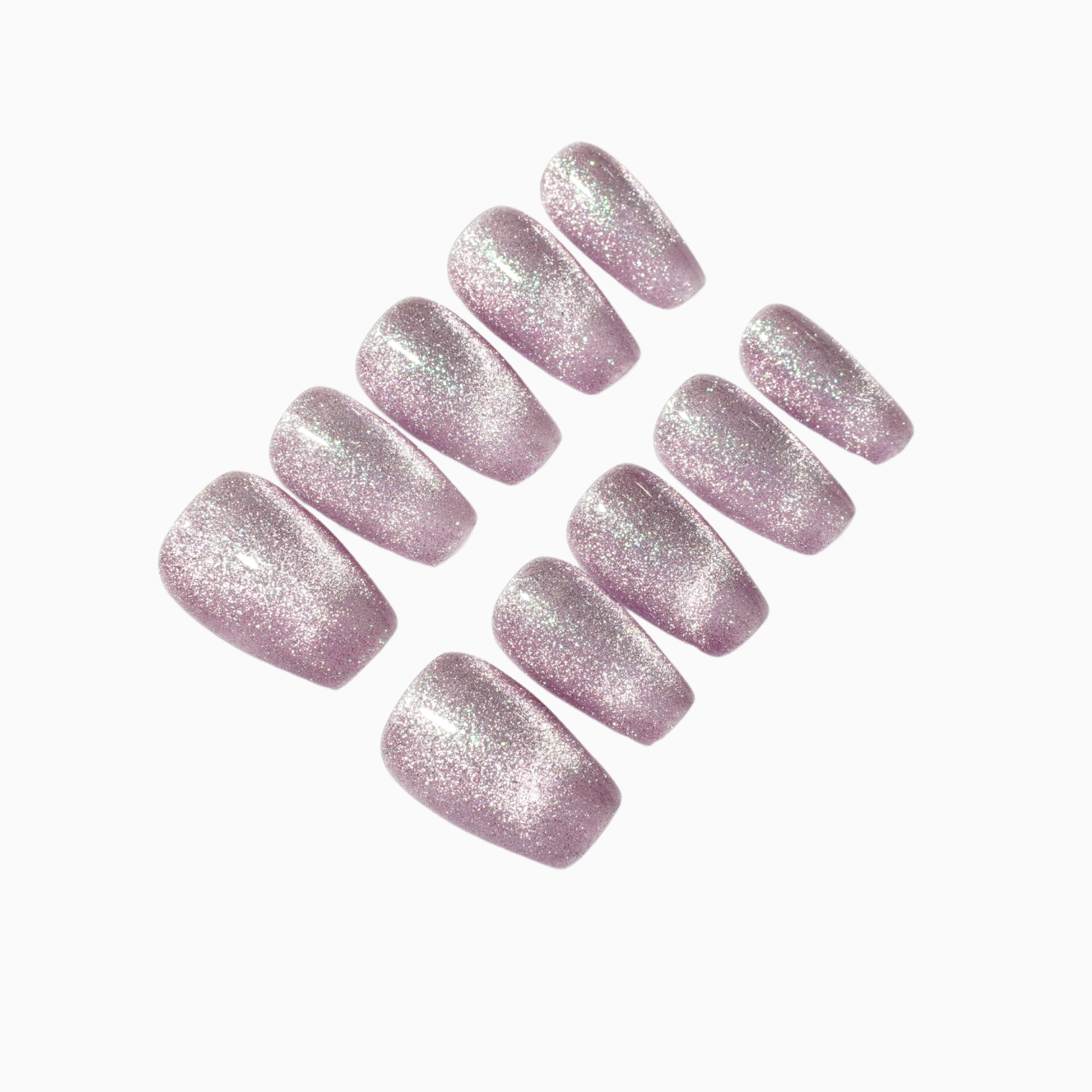 Cool lavender-silver shimmer that catches light like stardust — clean, refined, and quietly magical.
